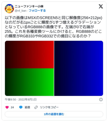 【2026.01.07更新】MSX Graphic Viewerの情報を追加 【2025.12.31更新】加筆修正 【2022.08.24更新】初版公開 執筆中。とりあえず記事化する。 事の発端 皆さんもレッツチャレンジ!! RGB888→RGB333(512色中16色) BMP to MSX TINY Bitmap Converter MSX S…